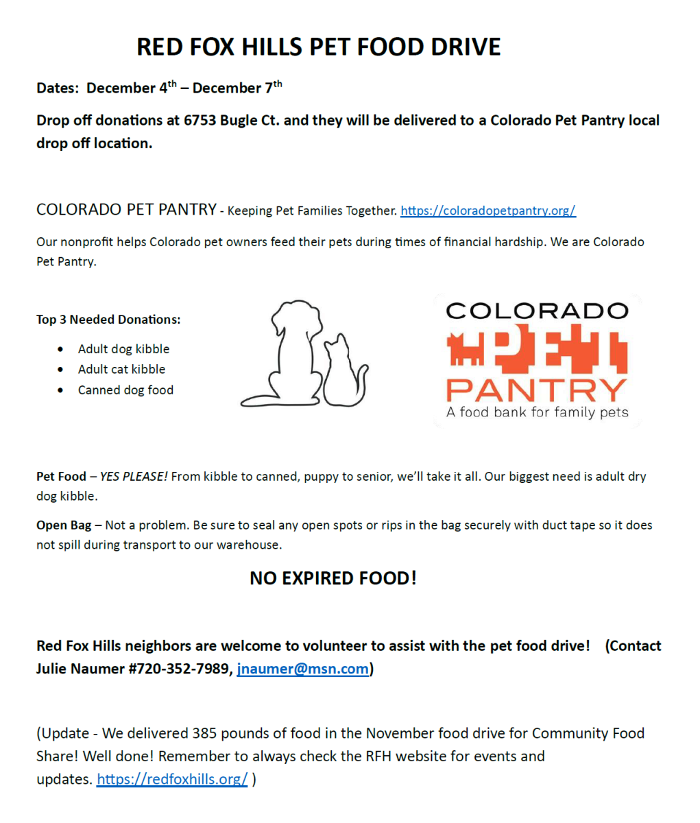 READ MOREAbout The Article: Red Fox Hills Food Drive Results!! Thank you!
